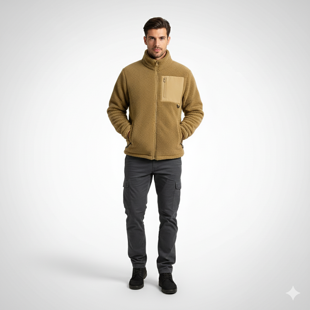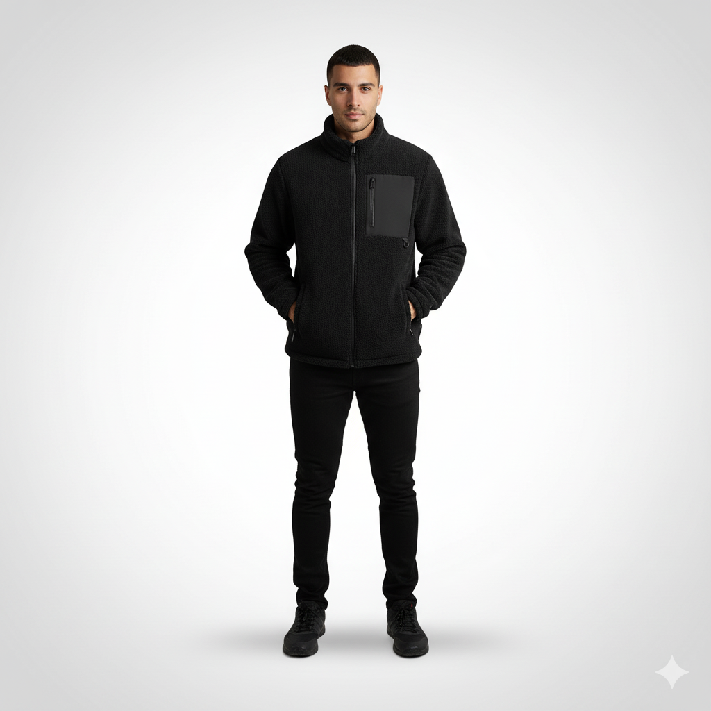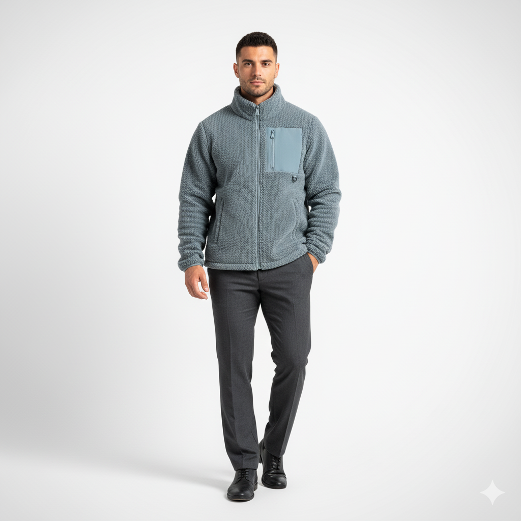 ג׳קט פליז איכותי המשלב חימום יעיל עם מראה נקי ואלגנטי.