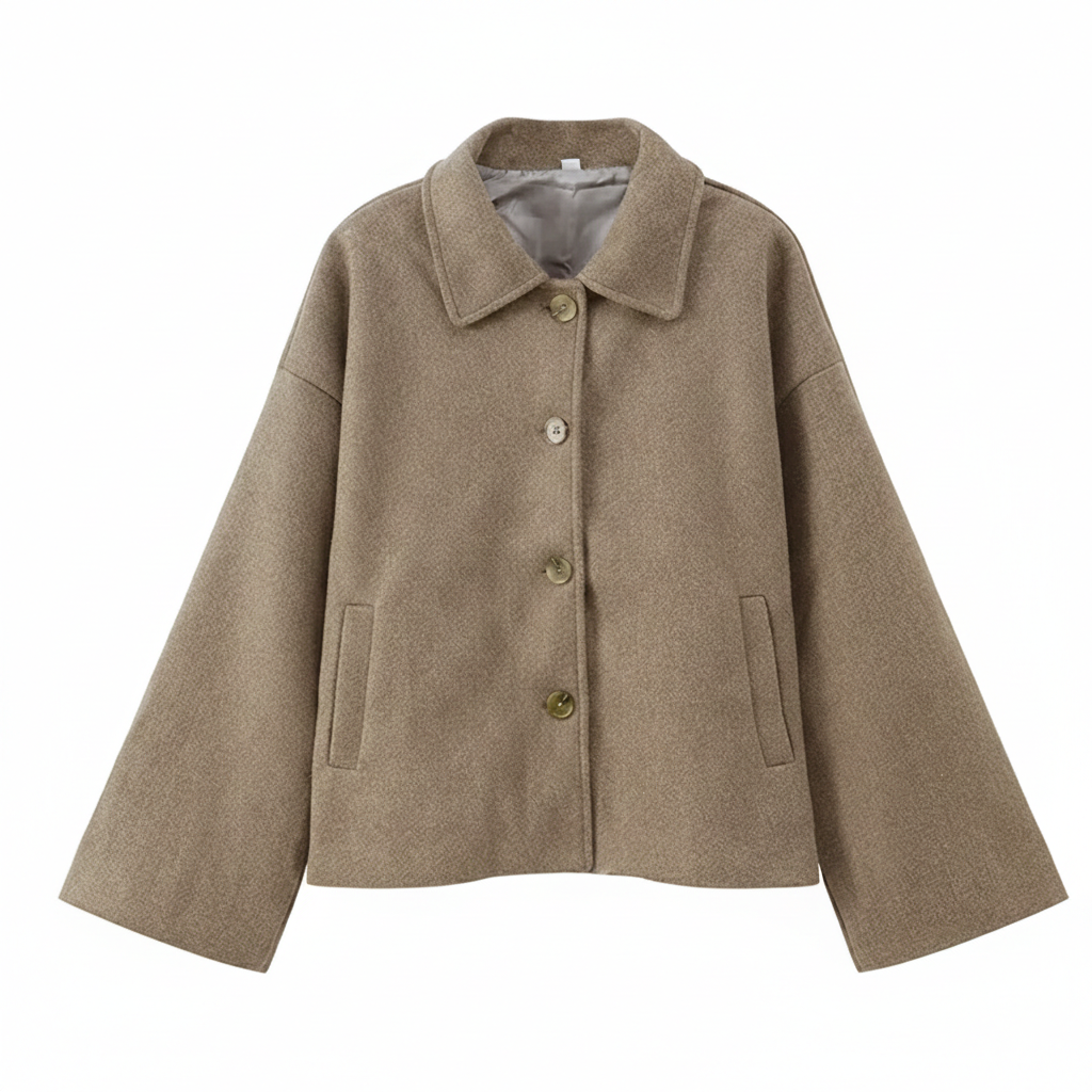 מעיל נשי במראה נקי ומדויק, עם גזרה ישרה ורחבה המעניקה נוחות ותנועתיות נעימה.