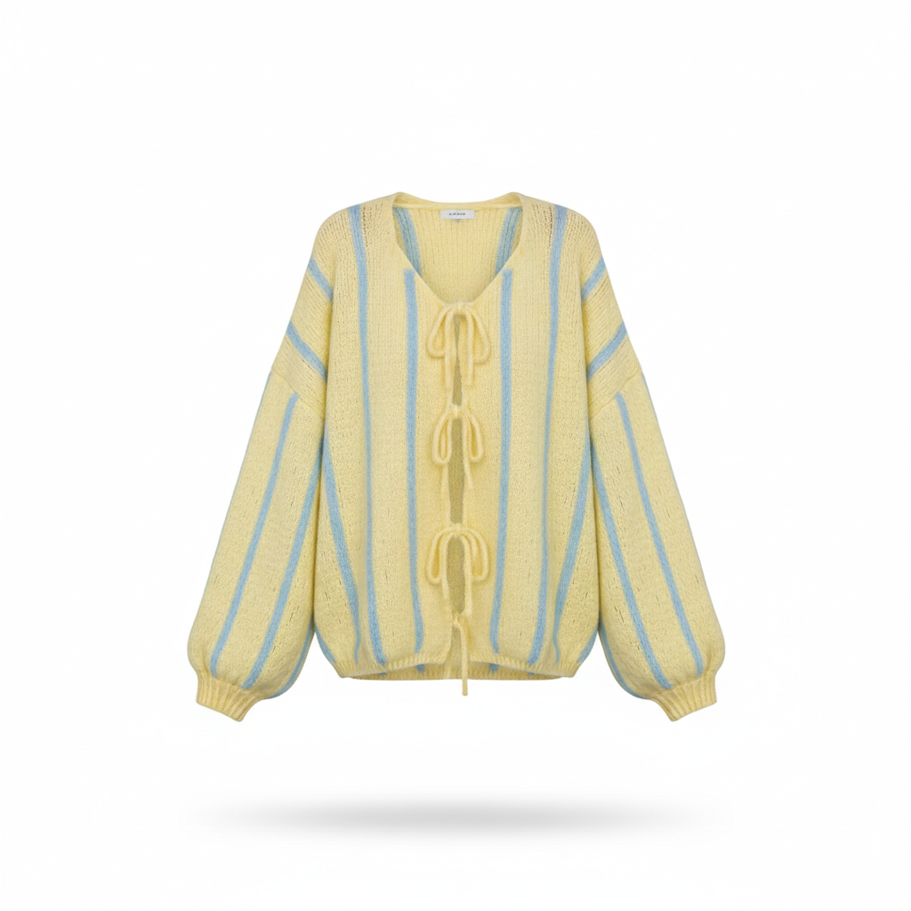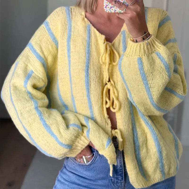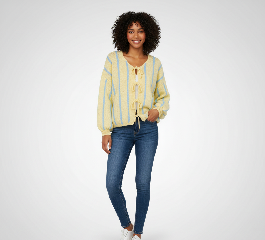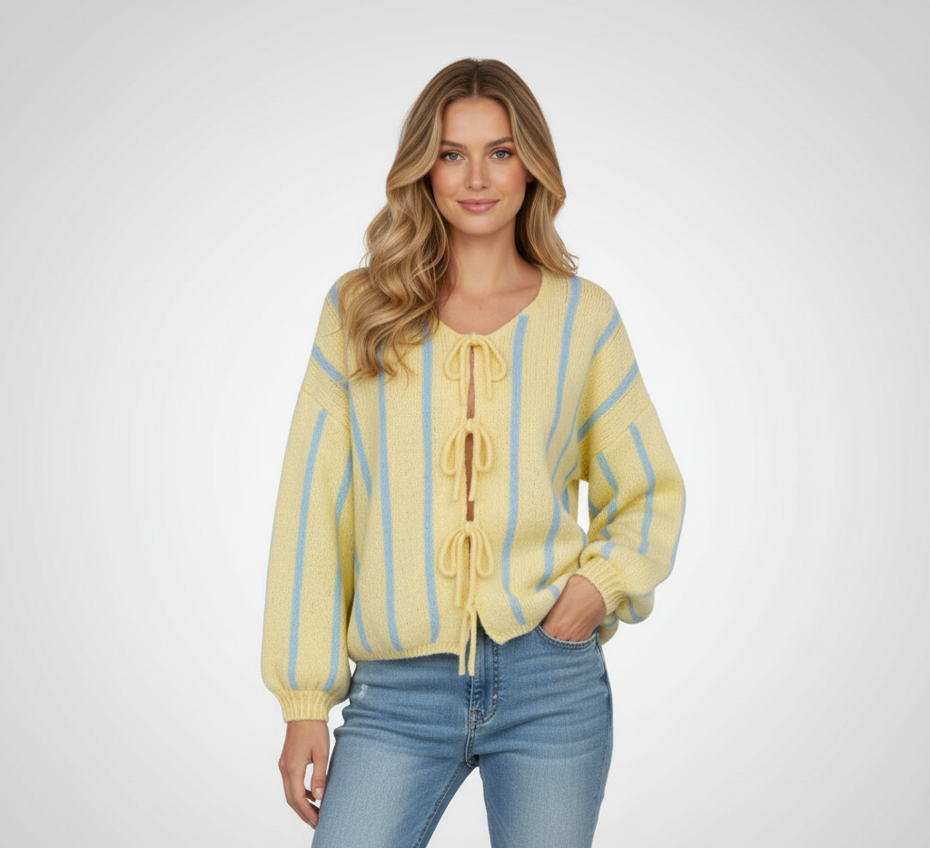 השילוב של פסים עדינים וגווני Pastel יוצר מראה קליל ומעודן,