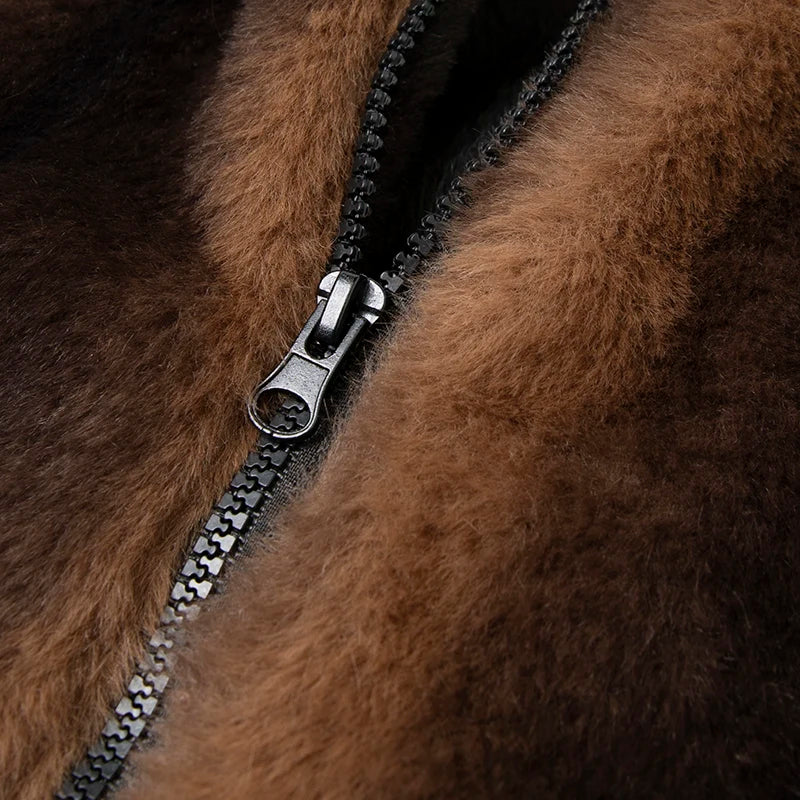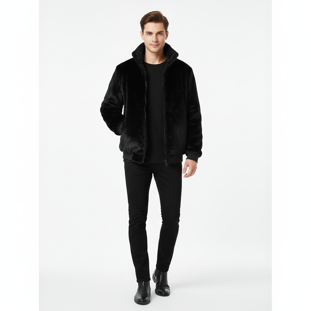 ג’קט במרקם פרווה סינתטית, בעל גזרה ישרה וסגירת רוכסן קדמית. מגיע עם צווארון עומד וכיסים צדיים שמדגישים מראה נקי ומודרני. גימורי שרוול וגימור תחתון אלסטיים לישיבה נוחה.